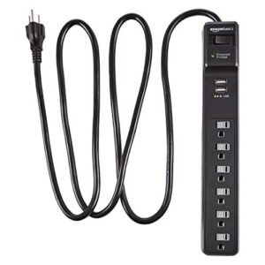 Amazon Basics 6-Outlet Surge Protector Power Strip with 2 USB Ports – 1000 Joule, Black